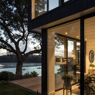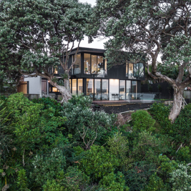 This new home in Whangaparaoa is nestled amongst the branches of protected Pohutukawa, looking through greenery to the Wade River as it flows into Arkles Bay. The brief for this project involved a new four bedroom home, with complete privacy from the street and maximum views over the water.