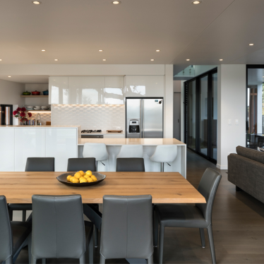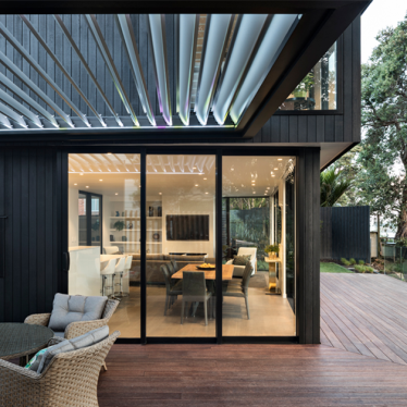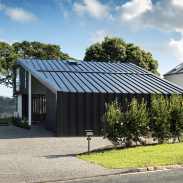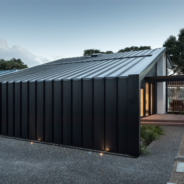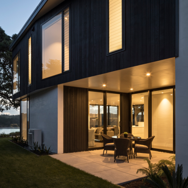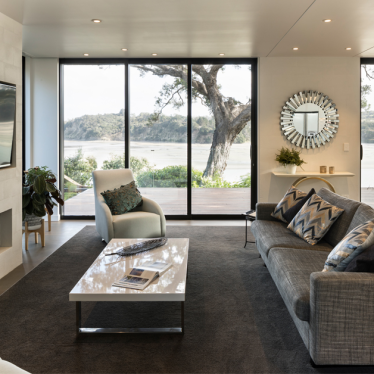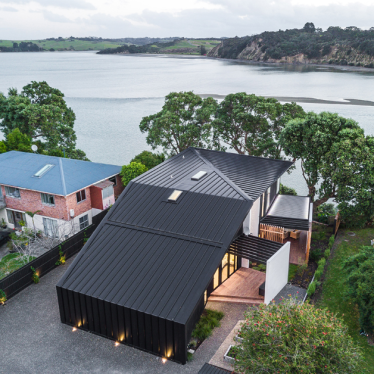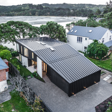 This new home in Whangaparaoa is nestled amongst the branches of protected Pohutukawa, looking through greenery to the Wade River as it flows into Arkles Bay. The brief for this project involved a new four bedroom home, with complete privacy from the street and maximum views over the water.