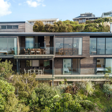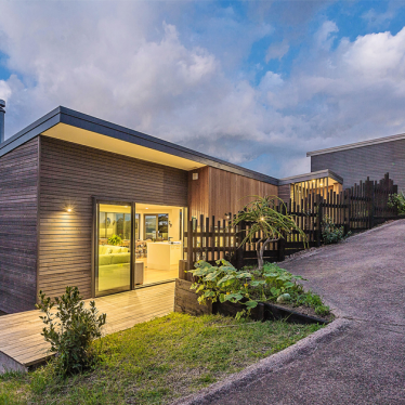 Located near Oneroa Beach, Waiheke Island, this home is positioned on a very steep site, facing north with views towards Hekerua Bay and beyond, with access from the southern located driveway. This new build was designed to fulfil the clients’ specific requirements and to maximise the coastal views using a limited budget.