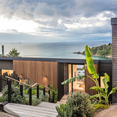 Located near Oneroa Beach, Waiheke Island, this home is positioned on a very steep site, facing north with views towards Hekerua Bay and beyond, with access from the southern located driveway. This new build was designed to fulfil the clients’ specific requirements and to maximise the coastal views using a limited budget.