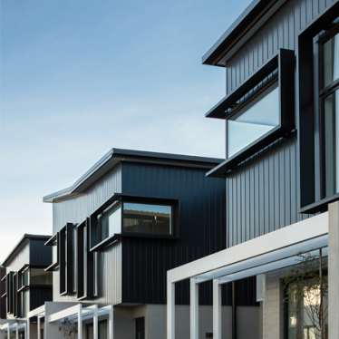 Aesthetically, each block has a distinctive treatment, with modern interpretations of building form, planting and surface treatment. End-units were treated as feature book-ends to each block, with pergolas, eyebrow shading, and louvres to provide alternating definition to the functional form and layout.