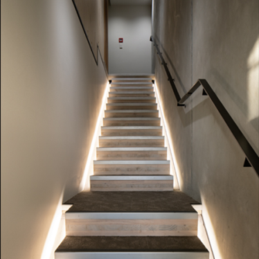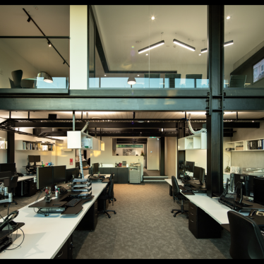 A cobbled entrance full of greenery leads to both a warehouse-inspired office space on ground level and the stairwell up to the main premises. The upper floors feature open-plan studio space, two meeting rooms, kitchens, feature moveable storage, and recreational space for the team. Extensive views out to the city fringe and motorways are framed to the east through a tinted floor-to-ceiling glazed curtain wall, and to the west through large bifold windows which open the kitchen to the outdoors. The upper floor looks to the east across a double height studio, with glazed stacking internal doors allowing natural light to flood the space, and providing options of closed or open space.