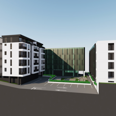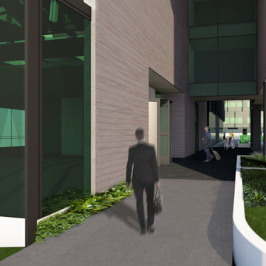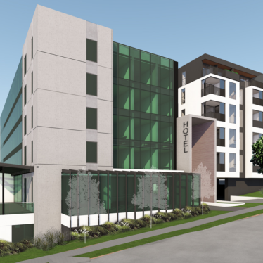 This proposal combines a hotel, residential apartments, retail, and hospitality spaces in sleek, contemporary forms, strengthening the urban scale of development that is emerging across the surrounding neighbourhood.