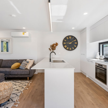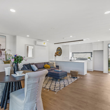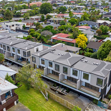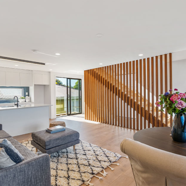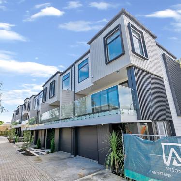 Situated within a terraced housing/apartment zone sit 8 terraced family homes. Geometric forms have been carefully arranged to create aesthetic facades working in tandem with comfortable and efficient interior layouts.