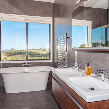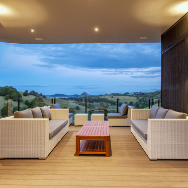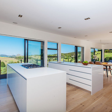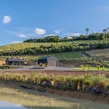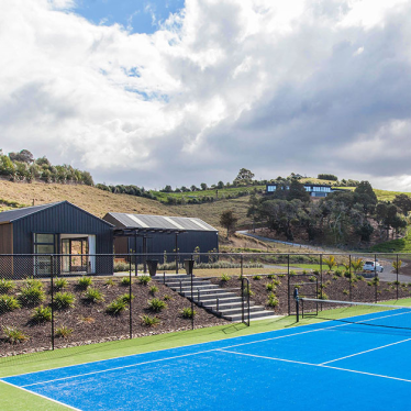 The clients requested that we create a master plan for the property, a vision that could be brought to life in stages. The site consists of two key developments. At the road side, on the flat, the summer house and boat shed structures alongside the tennis court. Higher up, the new house has been designed with a master bedroom wing, a living wing and a bedroom wing, stretching across the site to maximise the views of the surrounding valley and ocean.