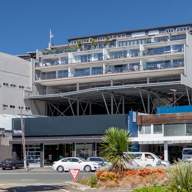 The building comprises of car-parking on Level 1 and apartments on four storeys above, accessed externally via open walkways exposed to the street façade. The walkways consist of glass balustrades and exposed cross braces. The decision was made to reduce the exposure of the walkways to the weather, utlising partially clad glass curtain walling (with open vents to meet building code requirements for fire and egress regulations.)