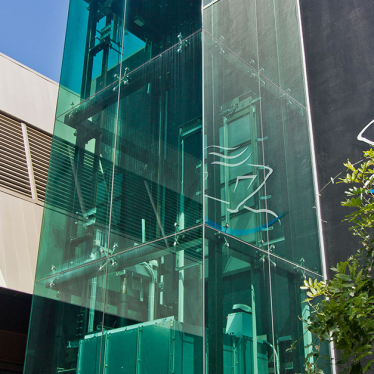 The entry area structure was retained and painted matt black. New green glass shopfront glazing was chosen to emphasise the entry. This was suspended off the existing structure by way of spider fixings.
