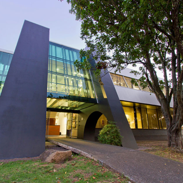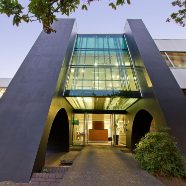 A dark colour scheme was chosen to emphasise the entry, circulation towers and the lower floor. This serves to provide contrast with and ‘float’ the lighter coloured upper floor.