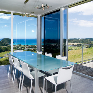Due to the topography it was important to have the majority of the outdoor living area accessible from the main living floor. This evolved into an indoor/outdoor room sandwiched between the main living area, entrance and swimming pool. The electronic louvers, allow natural light into the space with the ability to take in the views through the glazed living pavilion with the advantage of being sheltered from the elements.