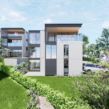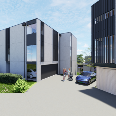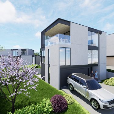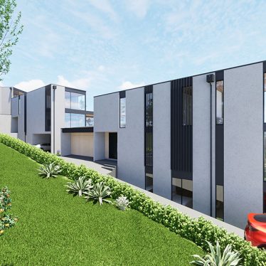 Pre-cast concrete panels create striking forms, softened with timber screens and evergreen planting across the site. These homes add value and densify the site, creating homes that are luxurious, uncompromising, and designed to last the test of time.