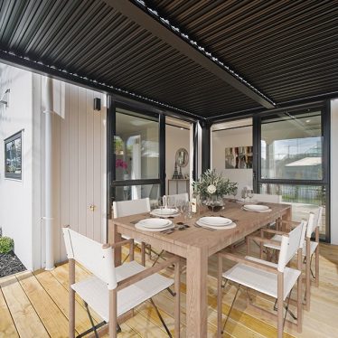 Aluminium and timber screens are used throughout to add interest and create privacy.