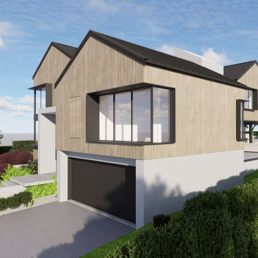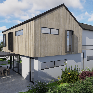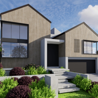 A bold interplay of natural textures and clean geometry, this contemporary residence balances warmth and strength through vertical timber cladding and sleek concrete forms.